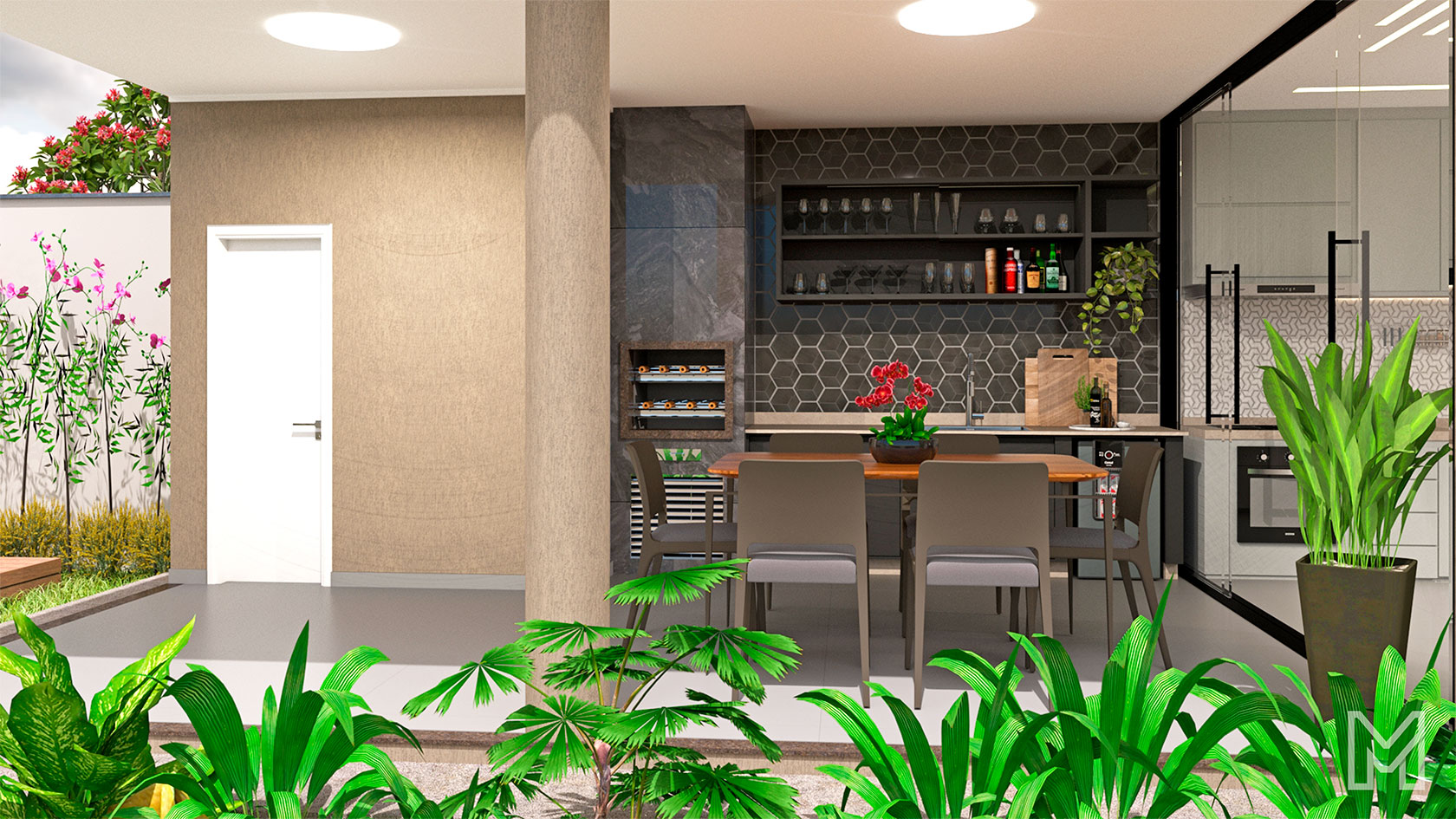 Espaço gourmet com churrasqueira a carvão